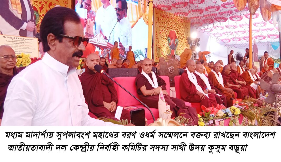 রতন বড়ুয়া, চট্টগ্রাম হাটহাজারী উপজেলার মধ্যম মাদার্শা সার্বজনীন শান্তিনিকেতন বৌদ্ধ বিহারের নবরুপকার অধ্যক্ষ কর্মবীর সুপালবংশ থের এর মহাথের বরণ ৪ এপ্রিল ২০২৬ শুক্রবার অনুষ্ঠিত হয়েছে। দুইদিন ব্যাপি এই ধর্মানুষ্ঠানের ২য় দিন বাংলাদেশ বৌদ্ধ ভিক্ষু মহাসভার মহামান্য সংঘনায়ক প্রিয়শীলি অধ্যাপক ড. বনশ্রী মহাথের এর সভাপতিত্বে অনুষ্ঠিত হয় । এতে ভার্চুয়ালী যুক্ত হয়ে প্রধান অতিথির বক্তব্য রাখেন গণপ্রজাতন্ত্রী বাংলাদেম সরকারের পার্বত্য চট্টগ্রাম বিষয়ক ও ভুমি বিষয়ক প্রতিমন্ত্রী ব্যারিষ্টার মীর মোহাম্মদ হেলাল উদ্দিন এমপি। বাংলাদেশ বৌদ্ধ ভিক্ষু মহাসভার সাংগঠনিক সচিব ভদন্ত সংঘানন্দ মহাথের ও বৌদ্ধ মহিলা নেত্রী চম্পাকলি বড়ুয়ার সঞ্চালনায় অনুষ্ঠানের উদ্বোধন করেন বাংলাদেশ বৌদ্ধ কৃষ্টি প্রচার সংঘের উর্দ্ধতন সহসভাপতি রাজগুরু অভয়ানন্দ মহাথের। এতে ধর্মদেশনা ও আলোচনা করেন, বাংলাদেশ বৌদ্ধ ভিক্ষু মহাসভার উপসংঘনায়ক সদ্ধর্মরশ্মী রতনশ্রী মহাথের, সহ-উপসংঘনায়ক ভদন্ত সুনন্দ মহাথের,বাংলাদেশ বৌদ্ধ ভিক্ষু মহাসভার সভাপতি ভদন্ত জ্ঞানানন্দ মহাথের,বাংলাদেশ বৌদ্ধ ভিক্ষু মহাসভার যুগ্ম-মহাসচিব ড. প্রিয়দর্শী মহাথের,বিদর্শনাচার্য ভদন্ত নন্দবংশ মহেথের, প্রফেসর ডক্টর সুব্রত বরণ বড়ুয়া,অধ্যক্ষ শিমুল বড়ুয়া, বুদ্ধজ্যোতি আর্ন্তজাতিক সংস্থা বাংলাদেশ স্বদেশ কুসুম চৌধুরী, বাংলাদেশ জাতিয়তাবাদী দল কেন্দ্রীয় কমিটির নির্বাহী সদস্য সাথী উদয় কুসুম বড়ুয়া, বাংলাদেশ জাতীয়তাবাদী যুবদল এর ধর্মীয় উপ-সচিব পার্থ প্রতিম বড়ুয়া, হাটহাজারী উপজেলা বিএনপির সদস্য সচিব মোহাম্মদ গিয়াস উদ্দিন চেয়ারম্যান ,অধ্যক্ষ শিমুল বড়ুয়া, ড. সুব্রত বরণ বড়ুয়া, বাংলাদেশ বুড্ডিষ্ট ফাউন্ডেশন এর সভাপতি অঞ্চল কুমার তালকদার , বাংলাদেশ বৌদ্ধ কৃষ্টি প্রচার সংঘের সহ-সভাপতি কমলেন্দু বিকাশ বড়ুয়া, রোটারিয়ান অমরেশ বড়ুয়া চৌধুরী, লায়ন ছোটন বড়ুয়া, বাংলাদেশ বৌদ্ধ কৃষ্টি প্রচার সংঘ মহিলা শাখার প্রচার সম্পাদক আইনজীবী রেবা বড়ুয়া, প্রকৌশলী ঝুলেন বড়ুয়া, উত্তর জেলা যুবদলের সাবেক সাধারন সম্পাদক সোলাইমান মঞ্জু, ইউনিয়ন বিএনপির আহবায়ক কামাল উদ্দিন , ১৩নং ইউনিয়ন পরিষদের ভারপ্রাপ্ত চেয়ারম্যান শাহাজাহান বাদশা,উত্তর জেলা বিএনপির প্রভাবশালী সদস্য জানে আলম জিতু, দানশীল ব্যাক্তিত্ব দেবাশীষ বড়ুয়া, সমাজ সেবক অনঙ্গ কান্তি বড়ুয়া, বিহার পরিচালনা কমিটির সভাপতি তপন কান্তি বড়ুয়া,সাধারন সম্পাদক কমল বড়ুয়া, সমাজ সেবক দিপংকর বড়ুয়া, তপু বড়ুয়া, সঞ্জিব বড়ুয়া,সংগঠক বিধান বড়ুয়া প্রমুখ । সন্ধ্যায় বিশ্বশান্তি কামনায় মঙ্গল প্রদিপ প্রজ্বলন এবং রাতে মনোজ্ঞ সাংস্ক