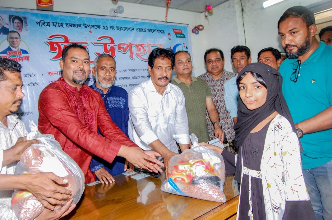 পবিত্র মাহে রমজানের সহমর্মিতা, ত্যাগ ও মানবিকতার চেতনায় চট্টগ্রাম নগরীর ২১ নং জামাল খান ওয়ার্ডে গরিব, দুঃখী ও সুবিধাবঞ্চিত মানুষের মাঝে ঈদ উপহার বিতরণের এক হৃদয়স্পর্শী আয়োজন অনুষ্ঠিত হয়েছে। শনিবার (১৫ মার্চ) বিকেলে ওয়ার্ড সংলগ্ন শরীফ কলোনিতে অবস্থিত বৌদ্ধ যুব পরিষদ কার্যালয়ে আয়োজিত এ অনুষ্ঠানে এলাকার নানা শ্রেণি-পেশার মানুষের স্বতঃস্ফূর্ত উপস্থিতি এক অনন্য সামাজিক সম্প্রীতির বার্তা বহন করে। পুরো আয়োজনটি ছিল সুশৃঙ্খল, আন্তরিক এবং মানবিক আবেগে ভরপুর। অনুষ্ঠানের উদ্যোক্তা বৌদ্ধ ধর্মীয় কল্যাণ ট্রাস্টের সম্মানিত ট্রাস্টি, চট্টগ্রাম মহানগর যুবদলের সাবেক সহ ধর্ম বিষয়ক সম্পাদক এবং আসন্ন সিটি কর্পোরেশন নির্বাচনে ২১ নং ওয়ার্ডের সম্ভাব্য কাউন্সিলর প্রার্থী বাবু রুবেল বড়ুয়া তাঁর সভাপতির বক্তব্যে বলেন, “রমজান আমাদের আত্মশুদ্ধি ও মানবসেবার শিক্ষা দেয়। সমাজের অসহায় মানুষের পাশে দাঁড়ানো শুধু দায়িত্ব নয়, এটি আমাদের নৈতিক কর্তব্য। আমি বিশ্বাস করি, মানুষের মুখে হাসি ফোটাতে পারাই সবচেয়ে বড় অর্জন।”